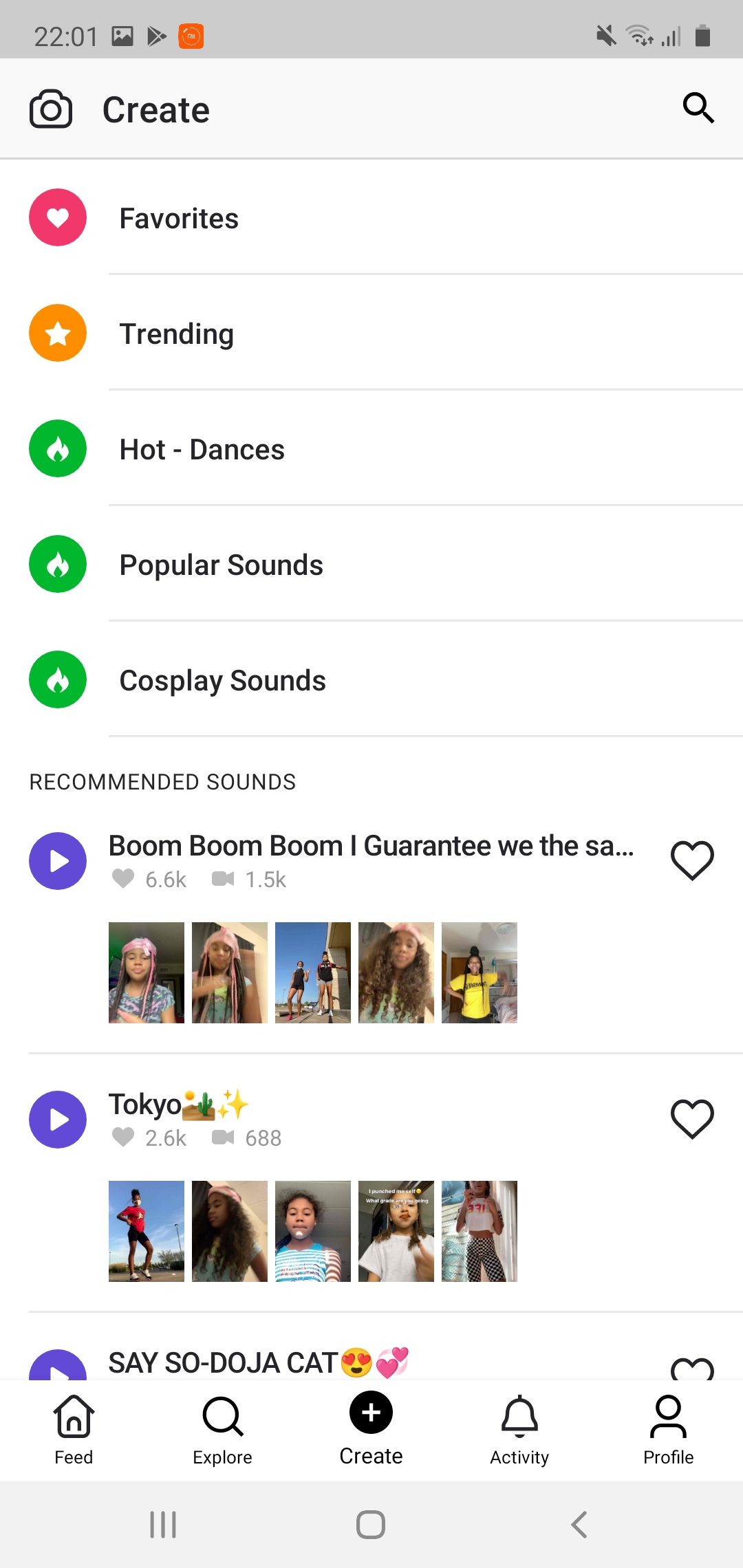 - Creation - It has a lot of features for dancers and singers but not that many filters and AR effects.