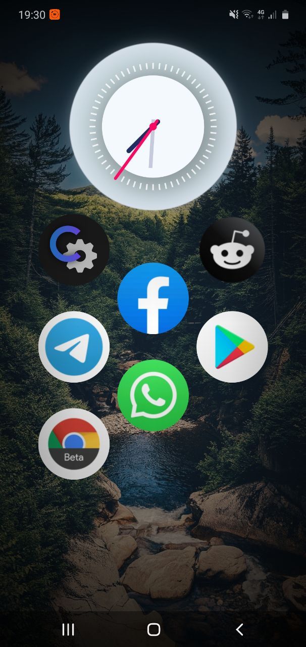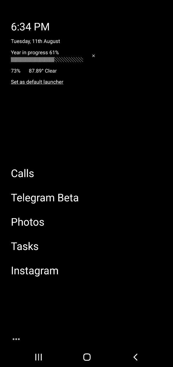 This launcher is a good example of a minimalistic approach. A blank screen, only 4 favourite apps and a bit of additional info like a "year progress". You can access other apps from a drawer on the right side via search. The "theme", app icons and "widgets" are customisable as well.