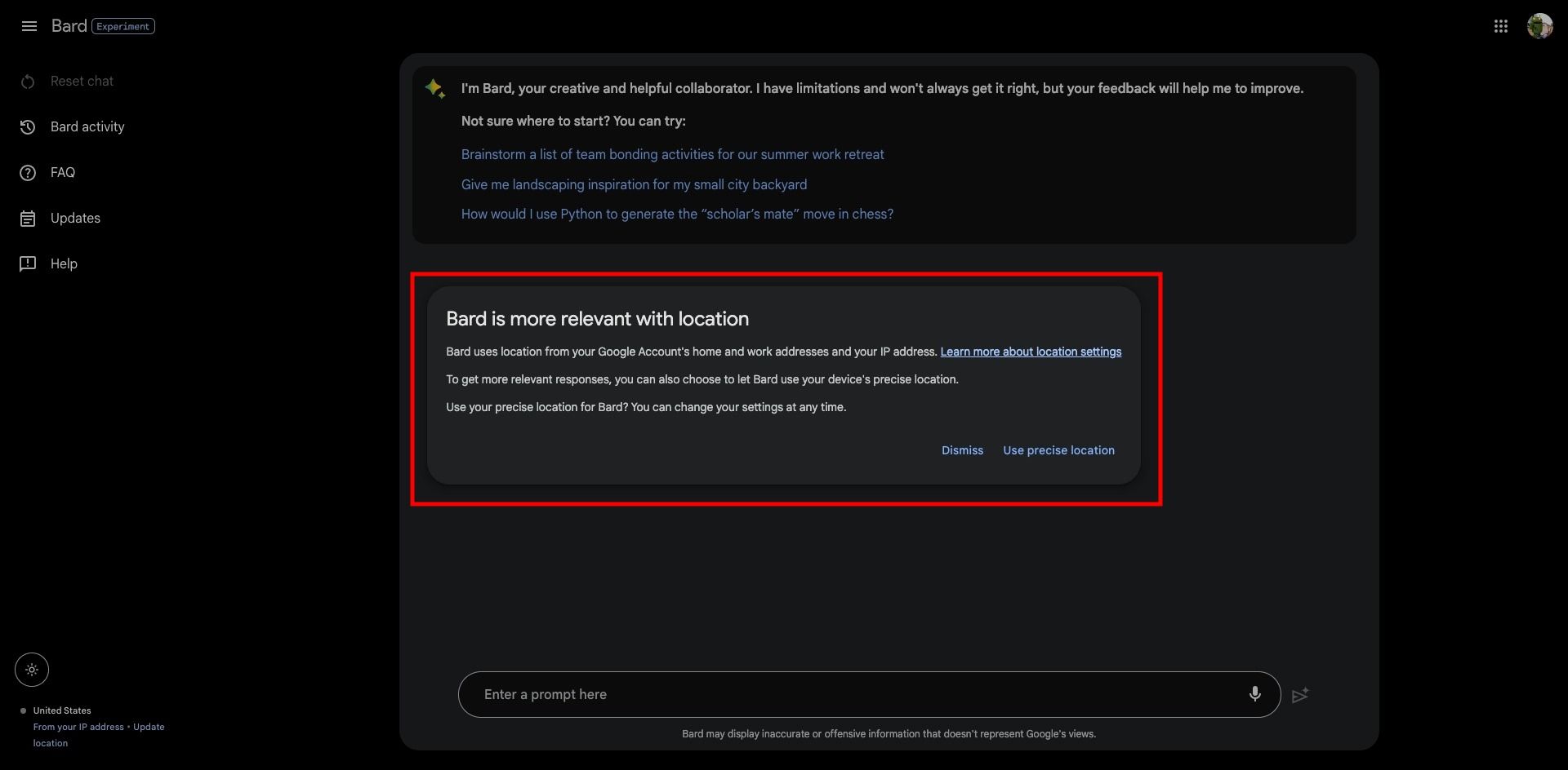 How to enable the location feature on Bard AI: