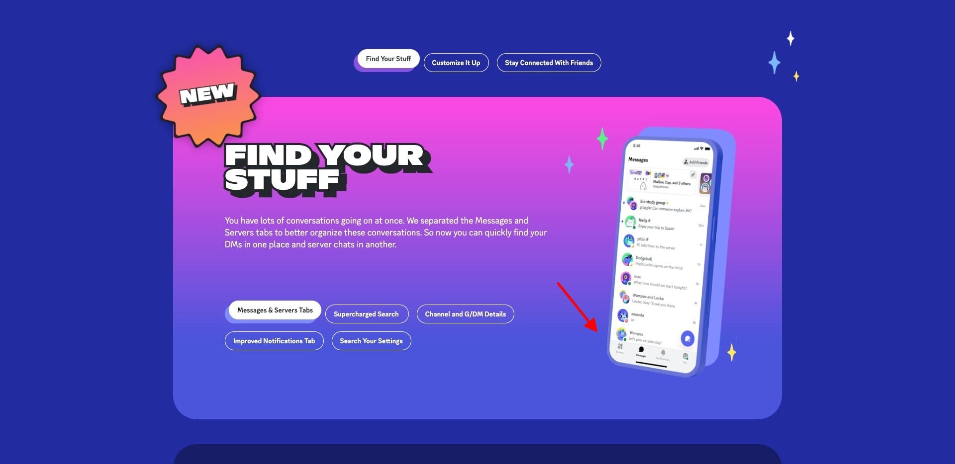 - Familiarize yourself with the new separate tabs for Messages and Servers by simply navigating through the app.