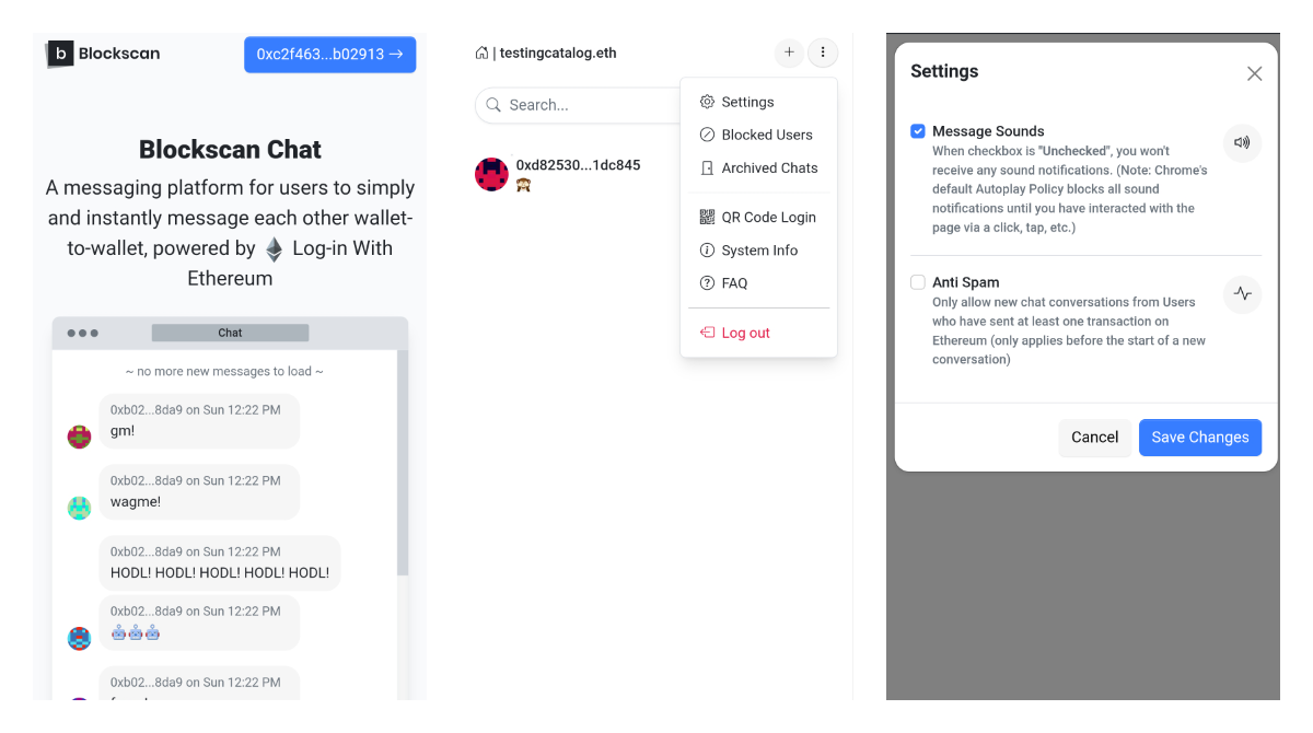 Now you can find a chat button on every ETH address page. From there you will be able to connect your wallet and message to any other wallet address.