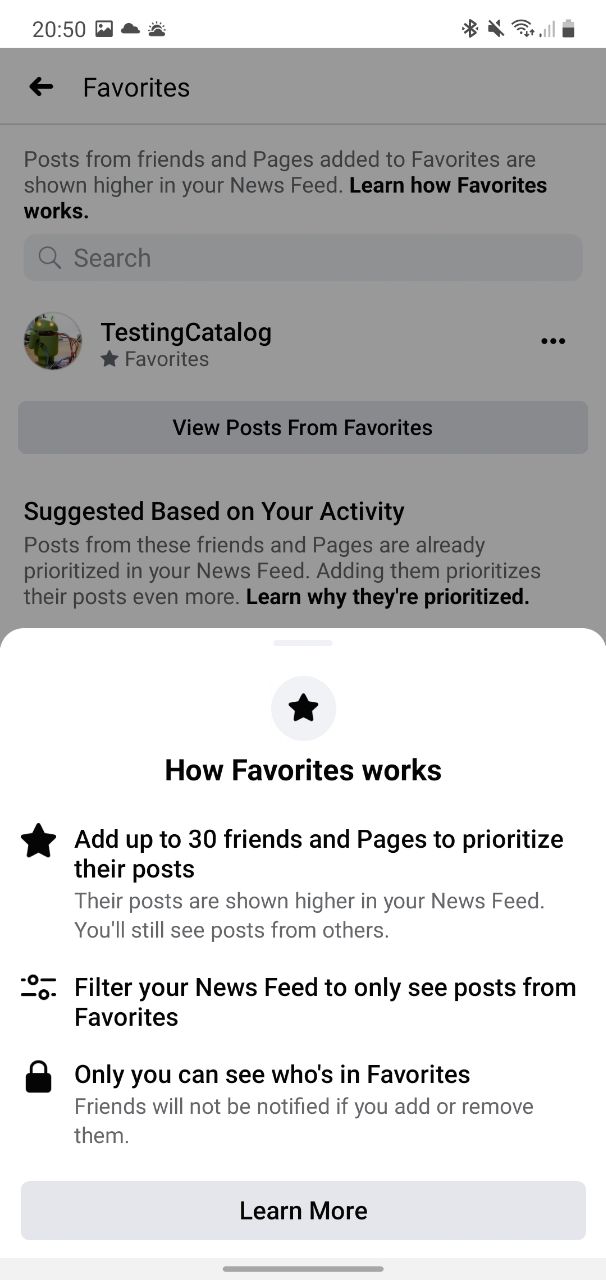 Facebook Favorites feed