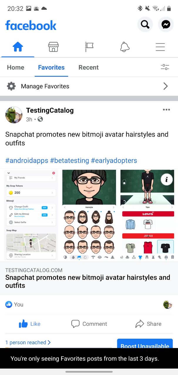 Some users on Android may spot tab navigation on top of their feed with "Home", "Favourites" and "Recent" tabs.