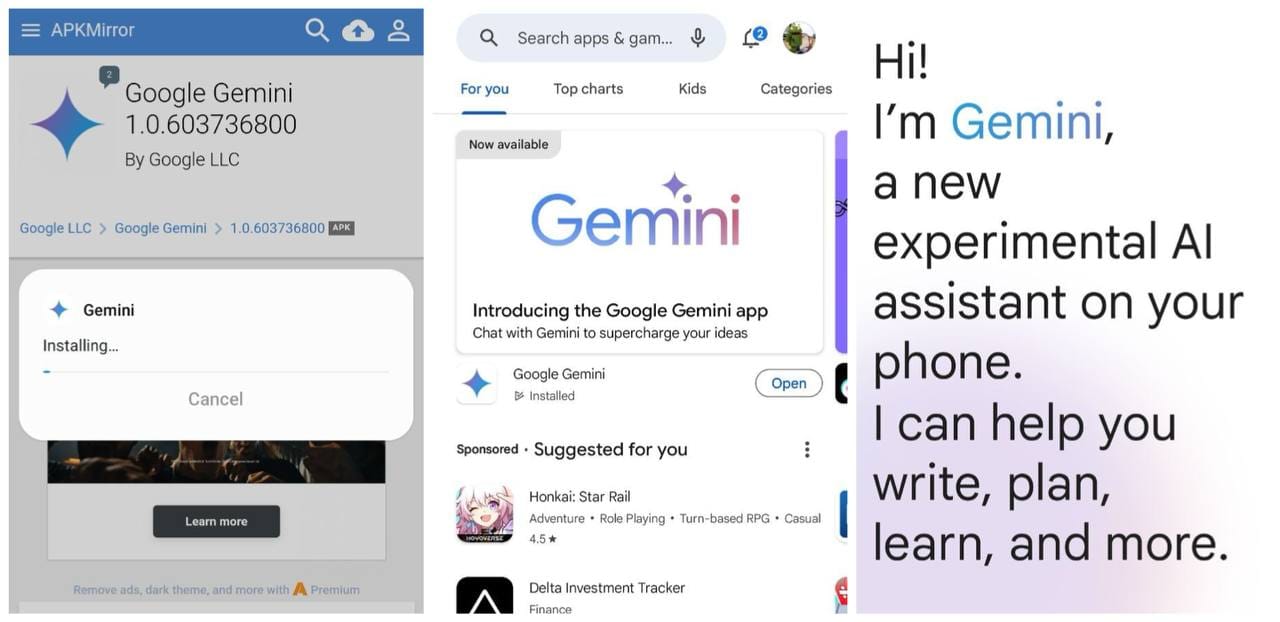 - What: Get help learning in new ways, writing thank you notes, planning events and more with Google AI on your phone. Gemini is integrated with Google apps like Gmail, Maps and YouTube, making it easy to get things done on your phone. You can interact with it through text, voice or images. To chat with Gemini on Android, download the Gemini app in the Google Play Store. On iOS, try Gemini in the Google app.The Gemini app will be launching on selected devices in English in the US. In the coming days, it will be available in Japanese, Korean, and English globally except for the UK, Switzerland, European Economic Area countries and associated territories. More countries and languages will be coming soon.