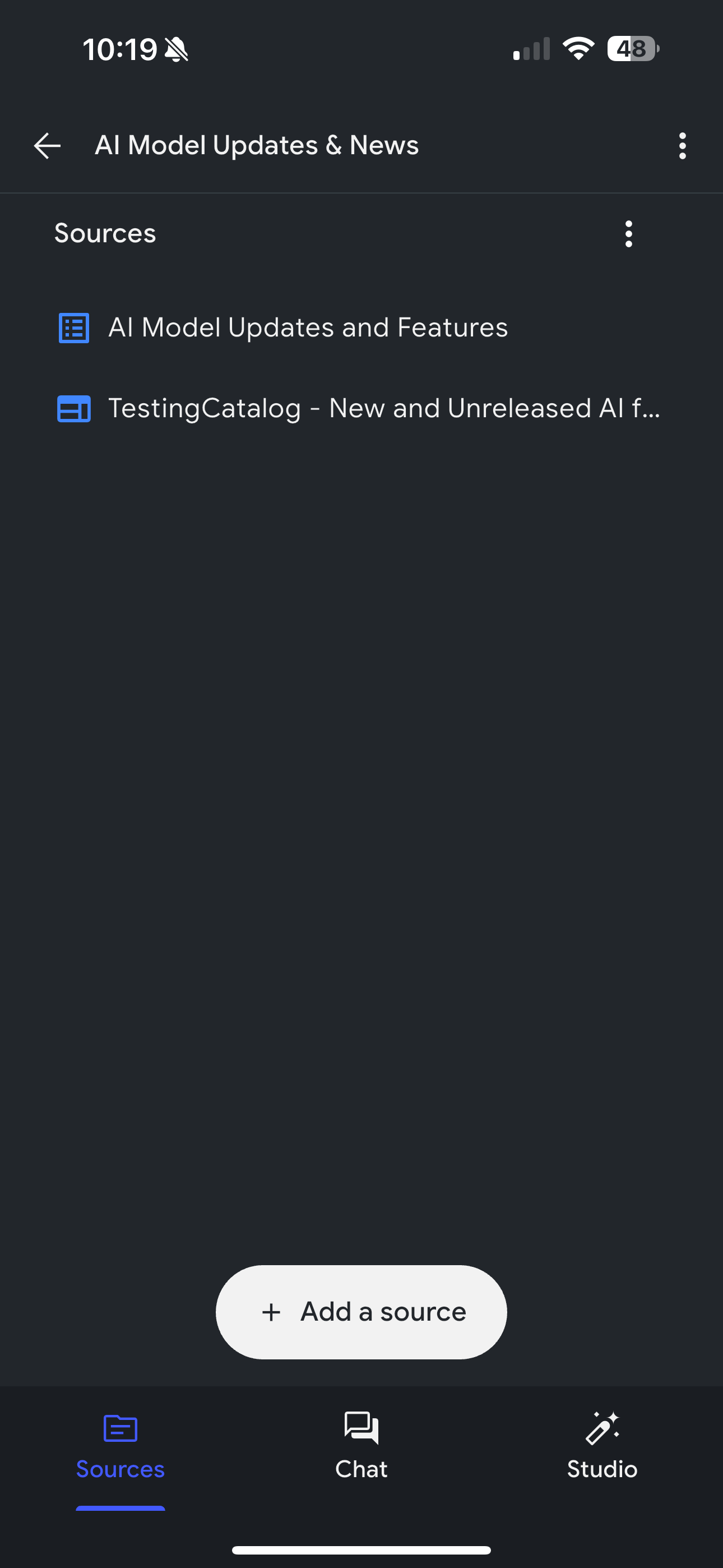 The main screen displays a list of projects with filter options and a built-in audio interface. Notably, this allows audio overviews, NotebookLM’s AI-generated podcast-style summaries, to be played directly from the list view without needing to open a project. A quick action button lets users generate audio if one isn’t already present. This setup makes the app feel more like a media player at times, suggesting that casual, passive consumption of content is part of the intended use.