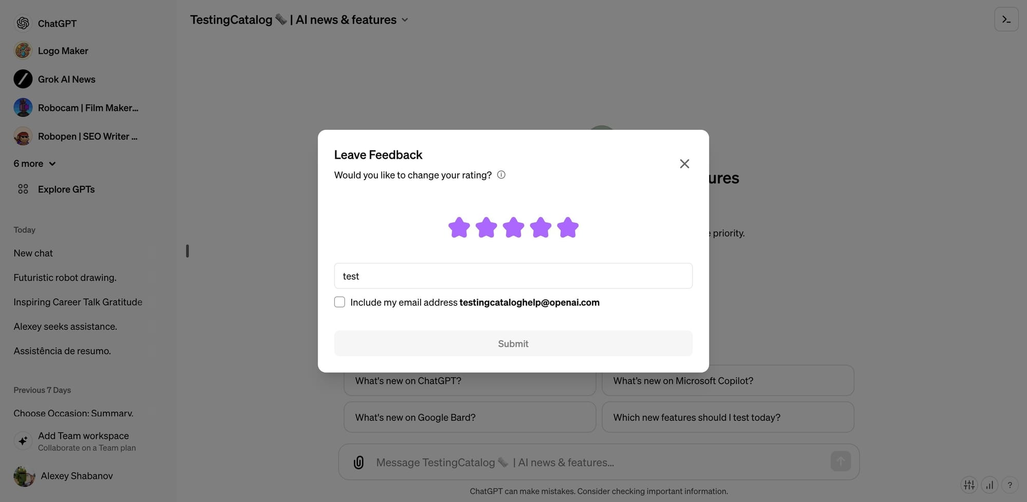 - To rate a GPT, select the 'Leave Feedback' or 'Rate GPT' option, visible both on the web and mobile versions, and choose your star rating.
