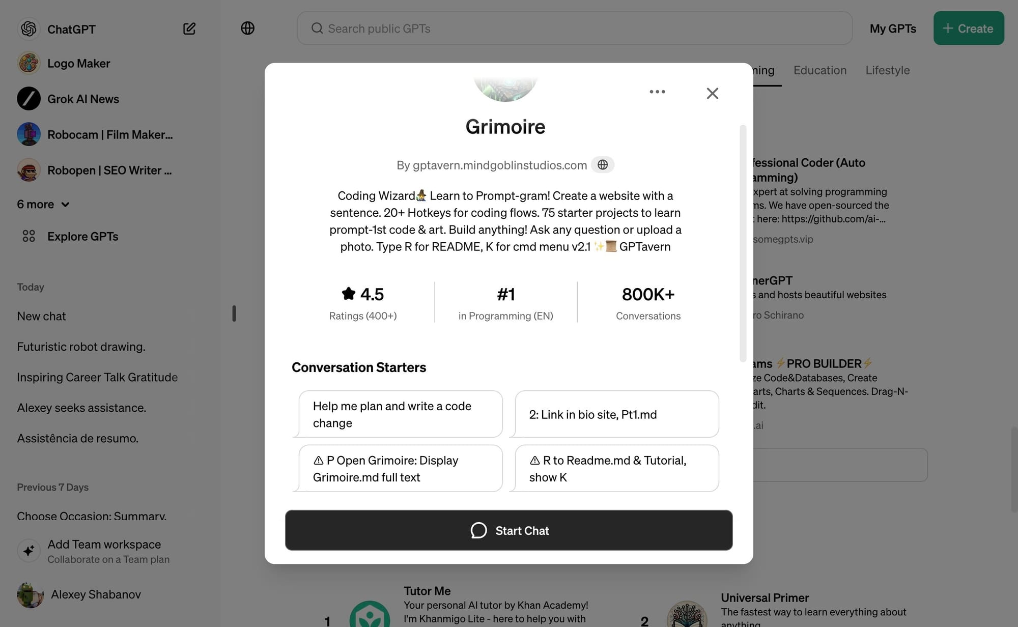 - Access the enhanced GPT About pages to view the GPT's rating, category, and list of conversation starters.