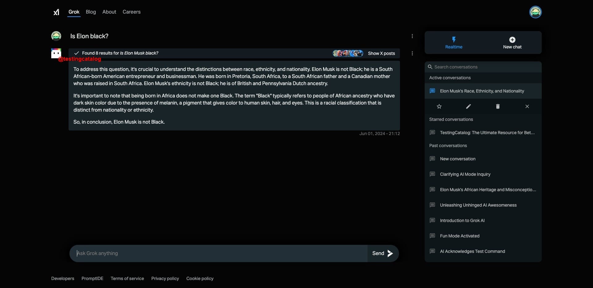 It appears that this mode is already implemented and functioning on the Standalone version of Grok (Only available in the US for now or with a VPN). If you ask Grok an incorrect question, it will handle the response correctly, addressing all the nuances.