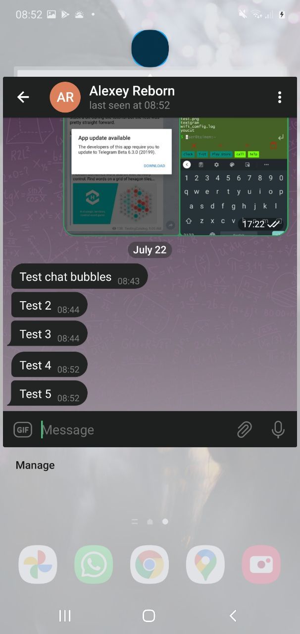 With the recent beta v6.3.0, Telegram devs added an interesting option to this menu that allows you to enable Chat Bubbles to appear on your home screen. Unfortunately, this feature is only available on Android 10+ devices but if you don't have it yet, from this post you still can learn how to get access to the debug menu.