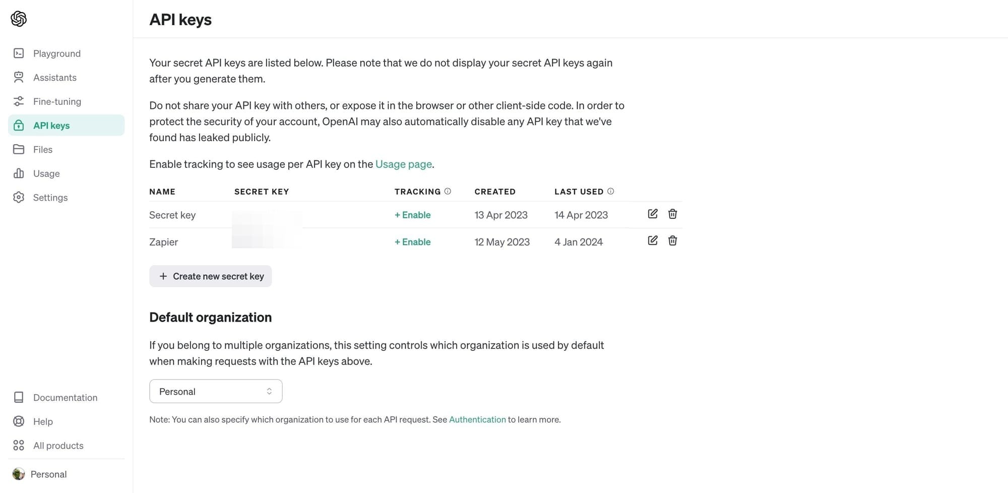 - Sign in to your OpenAI account and navigate to the API keys page.