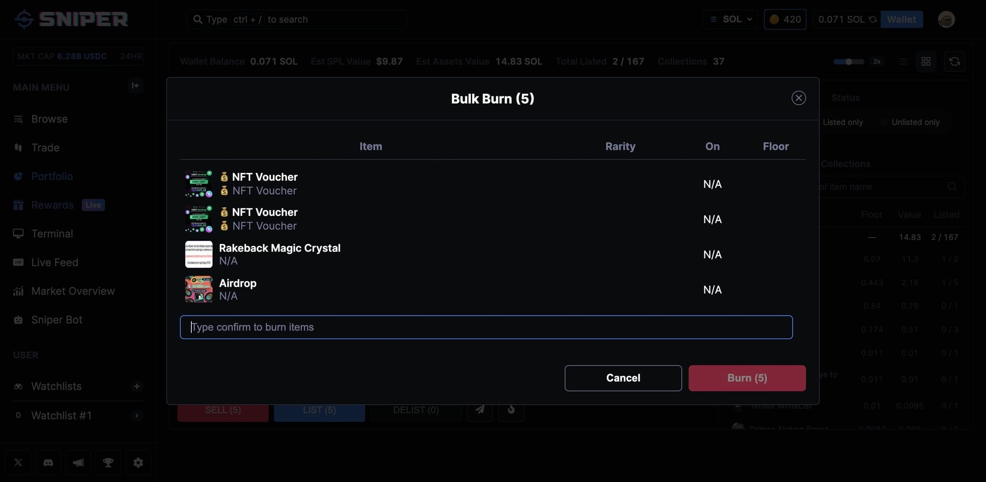 - Review the confirmation pop-up, ensuring you are ready to proceed with burning the selected NFTs.