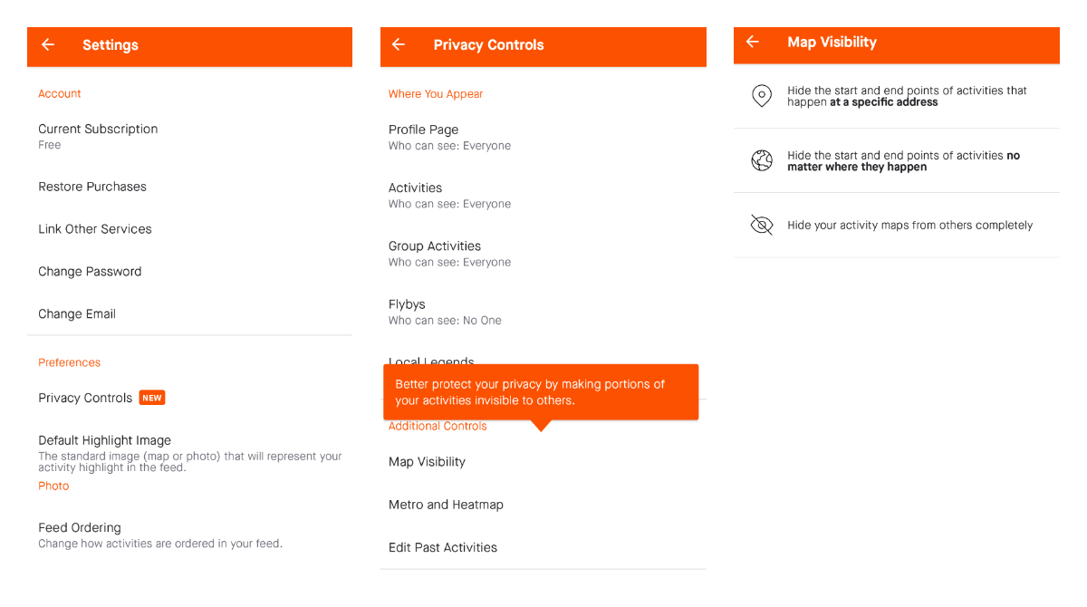 The settings page got a new addition for its privacy section. There you got additional controls to set visibility for your map, metro and heatmaps. For example, you can hide your starting points at a specific location so it will be hard to track you. Past activities can be edited as well.
