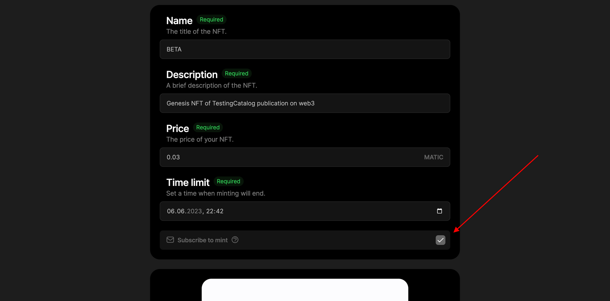 "Subscribe to Mint" allows creators to require an email subscription upon minting.