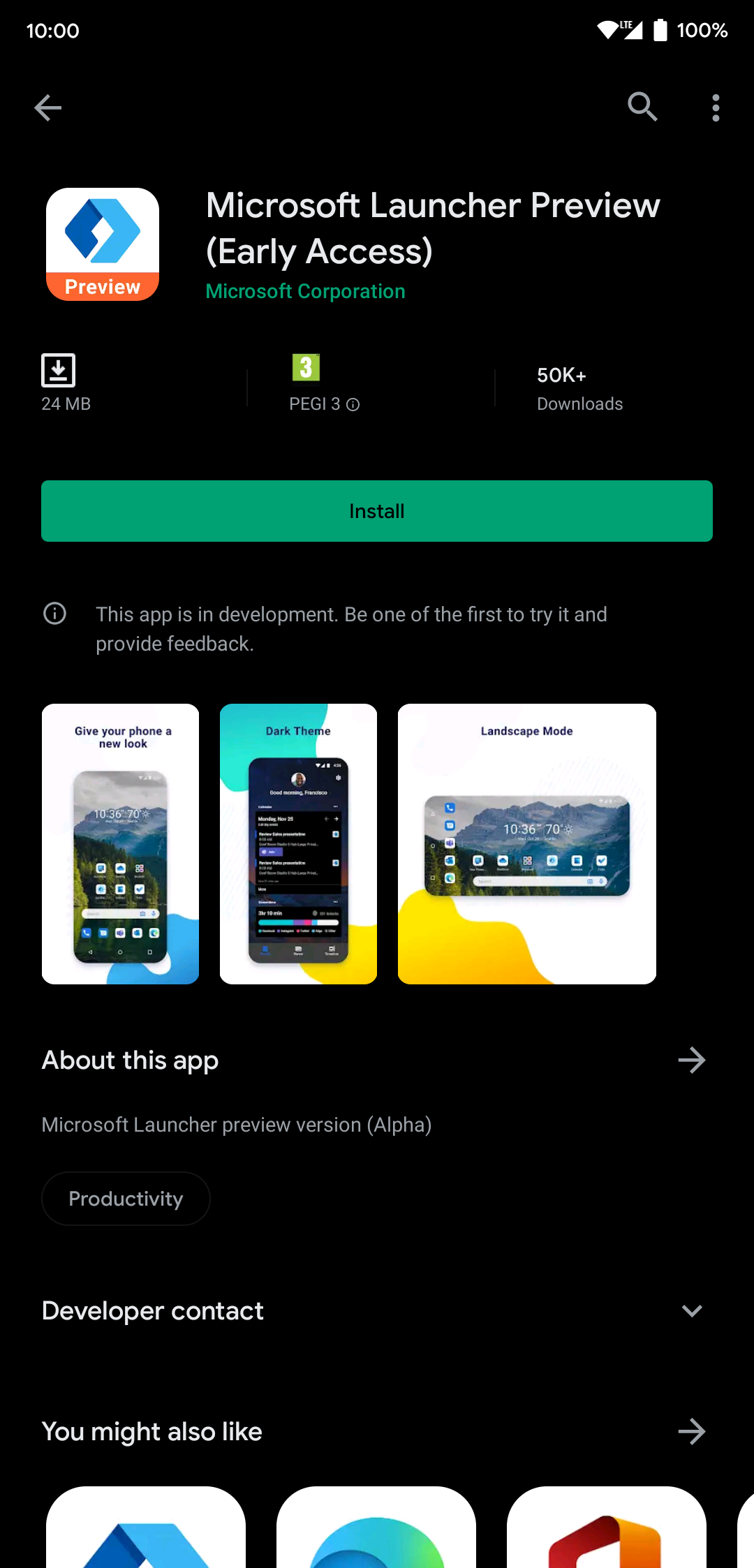 Microsoft Launcher Preview on Google Play