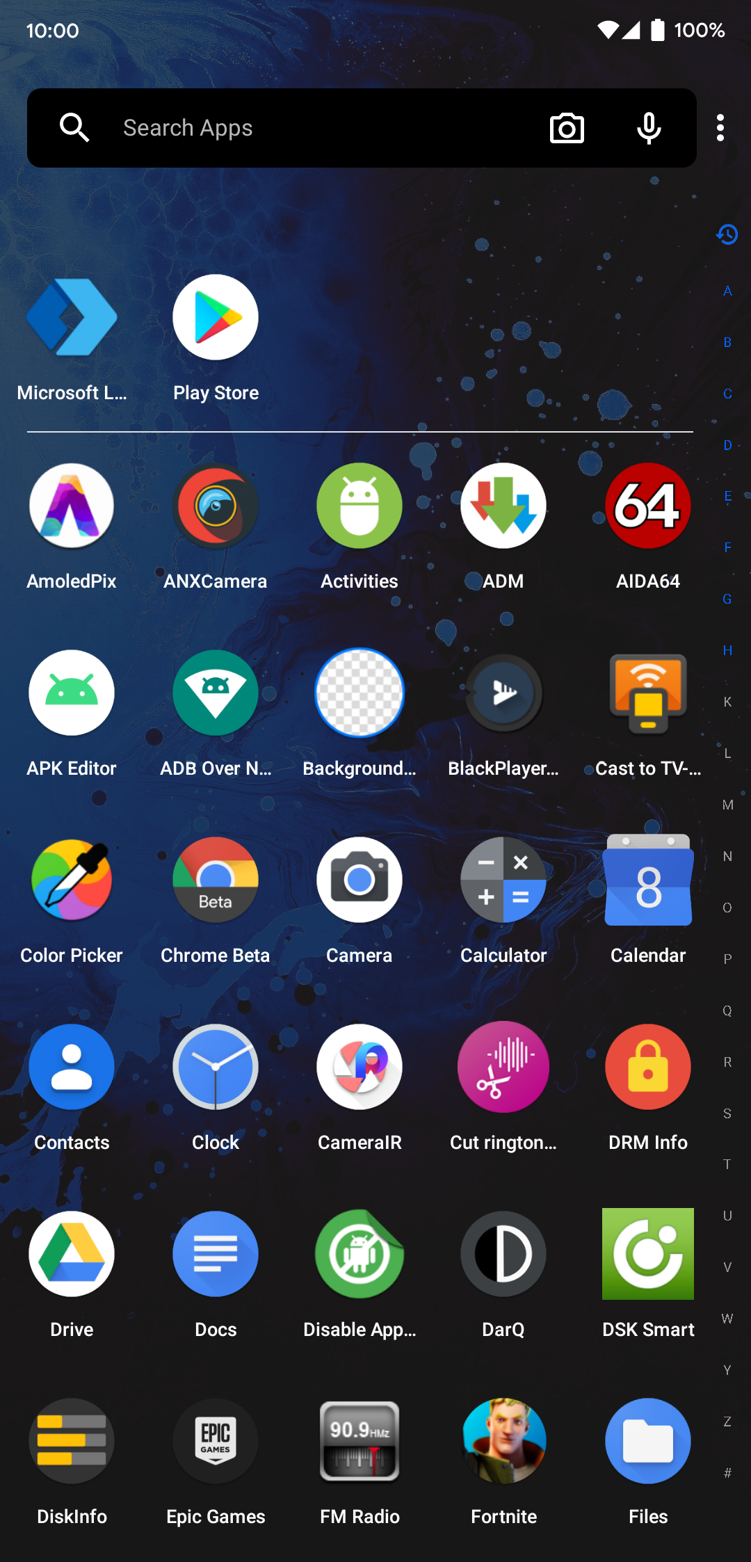 - The search bar in the app drawer picks up abilities such as voice and image search through Bing.