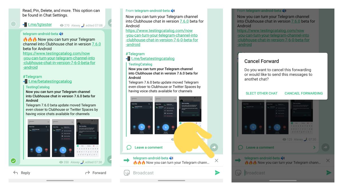 A slight improvement was made to the forwarding flow that now has an option to cancel forwarding completely to pick another chat as a destination.