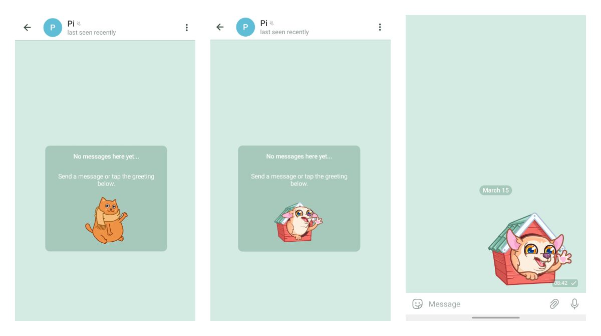 In addition to this, if you will open a chat with a contact that you have never talked to before, you will see a new random greeting sticker that you can tap to send.