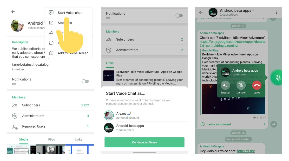 This update moved Telegram even closer to Clubhouse or Twitter Spaces by having voice chats available for channels. At first you can choose if you want to host a voice chat from your personal profile or from your channel profile.