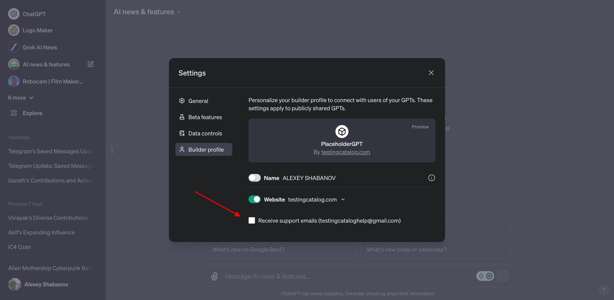 - [New 🔥] Enable Support Email: Opt-in to receive support emails via your Builder Profile settings, which will enhance the support system between users and creators, and foster seamless communication.