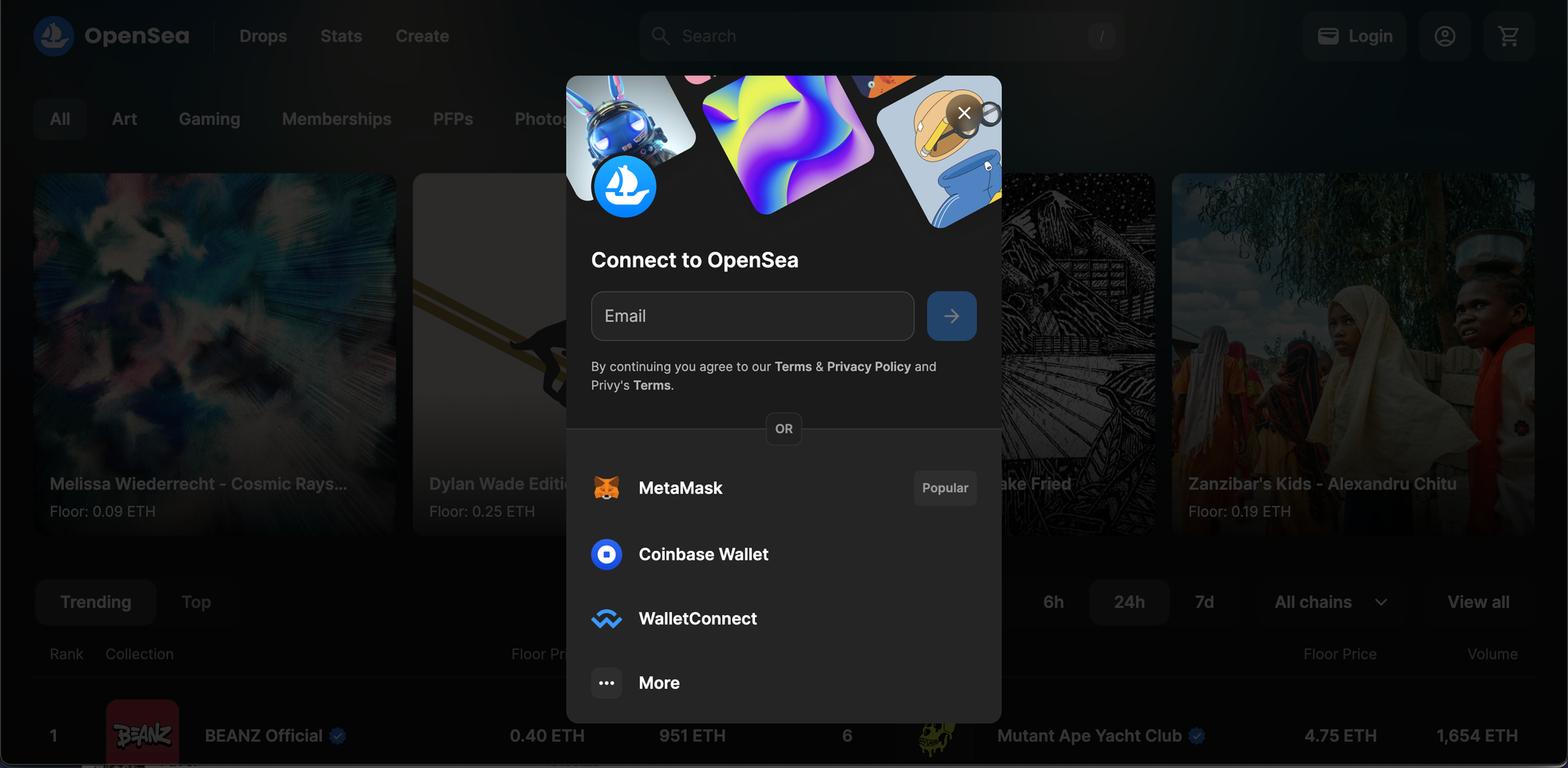 - Visit OpenSea's official website.