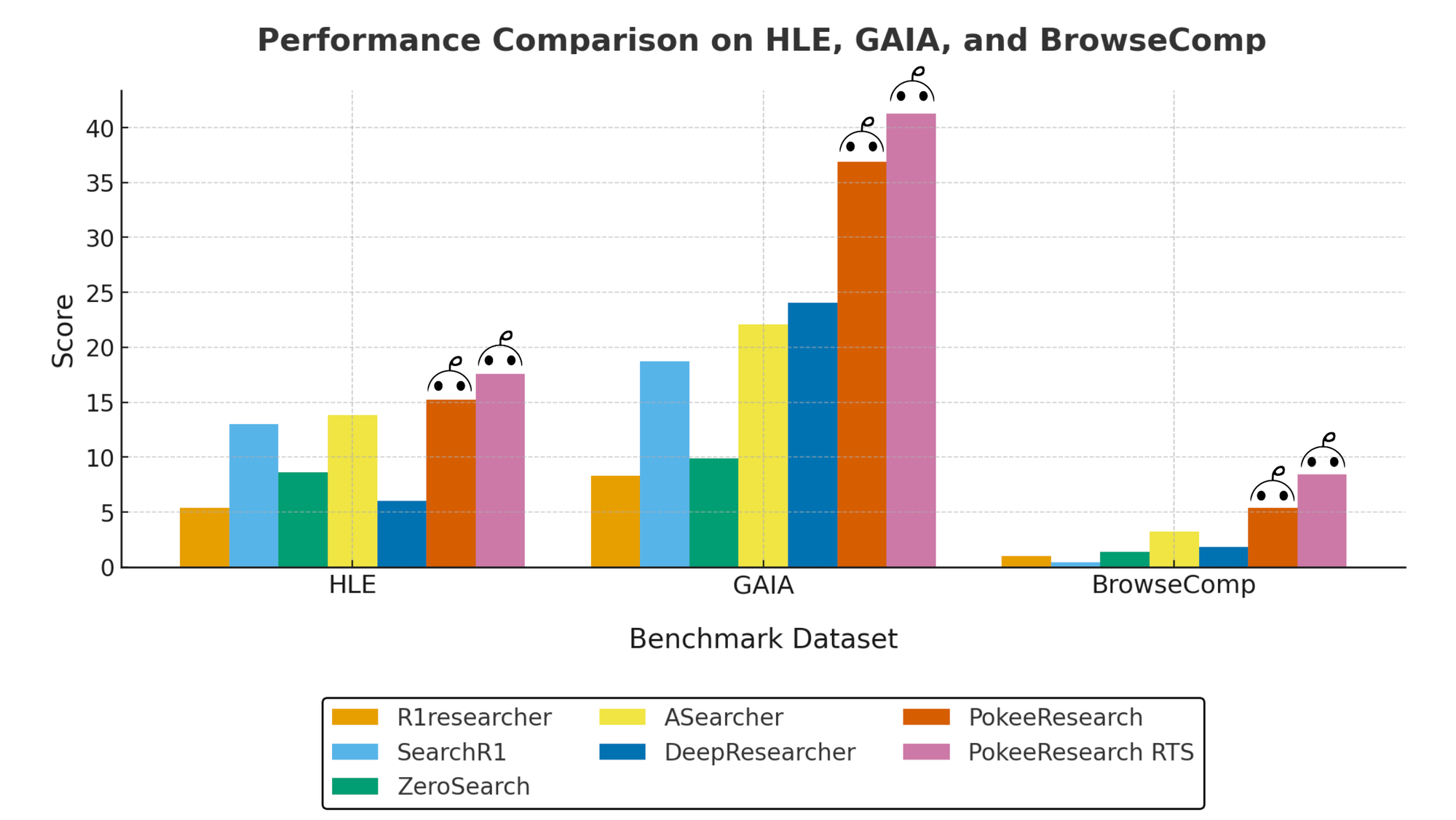 Today, we’re releasing PokeeResearch-7B, a SOTA open-source deep research agent that outperforms all other 7B deep research agents. And, we are open-sourcing both the weights and inference code on @huggingface!