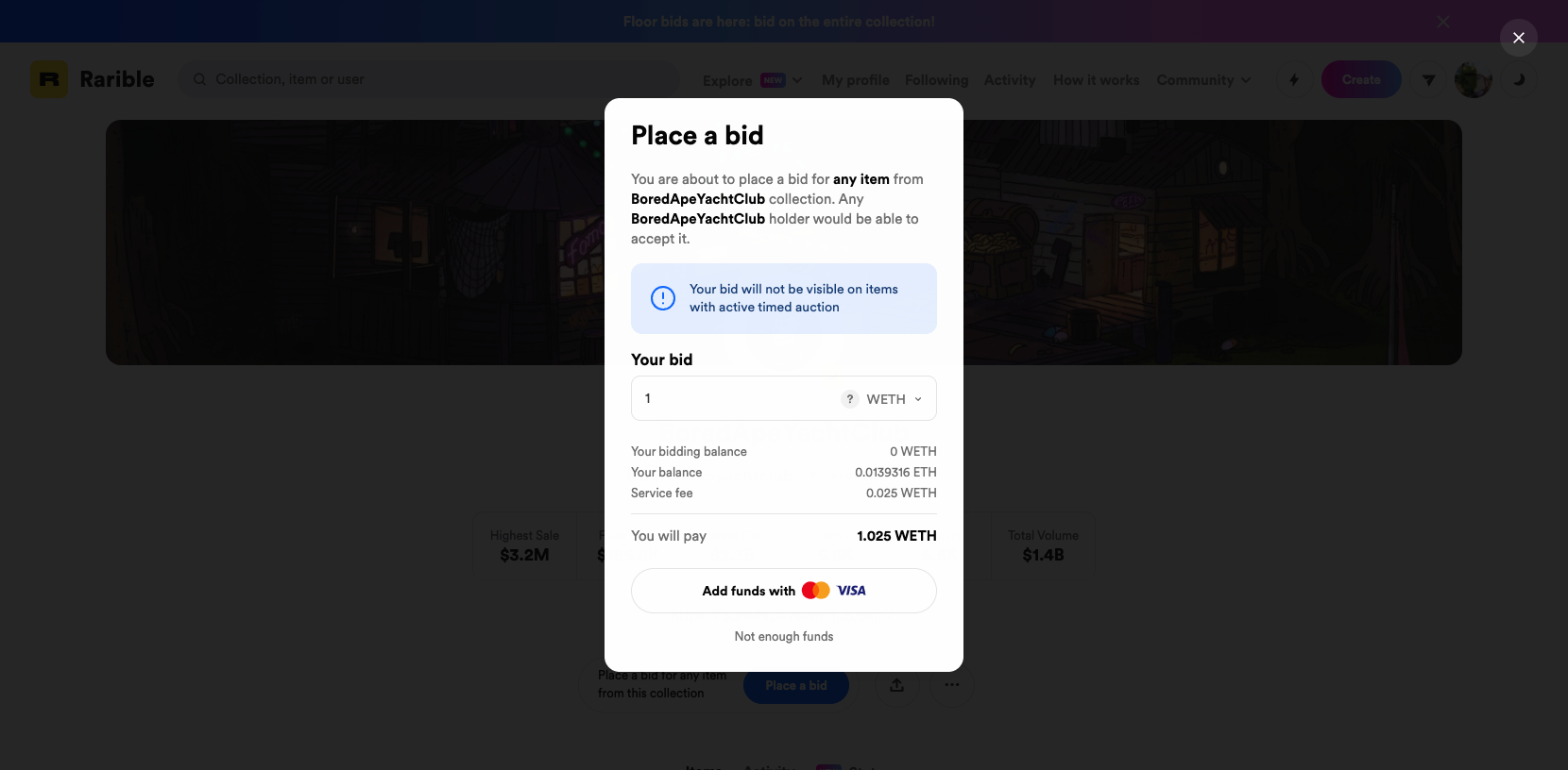 This new bidding option is available to anyone from the collection profile page on Rarible web. The button lives right below the description and it will open a pop up where you can set your bid. This offer will be available to all owners of NFTs from this collection.