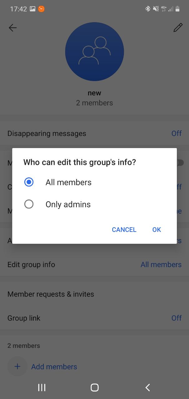 At the meantime, group admins can have a wider set of permissions that can allow them to change group description, add or remove members and adjust group settings.