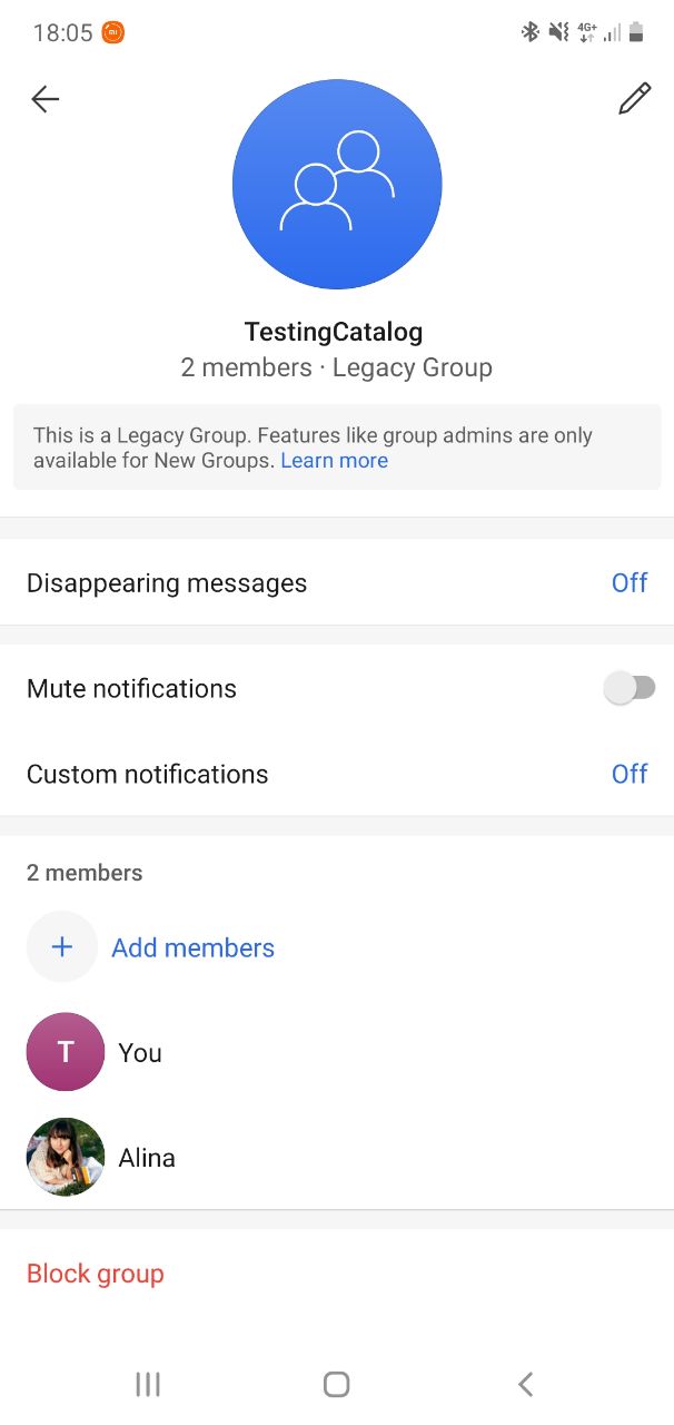 Now, all groups that were created before the update will be marked as "legacy". Unfortunately, it is not possible to enable new features in legacy groups or convert them to a new type. When creating a new group where you want to use above group features, you will need to make sure that all group participants whom you want to add, updated their app to the latest version.