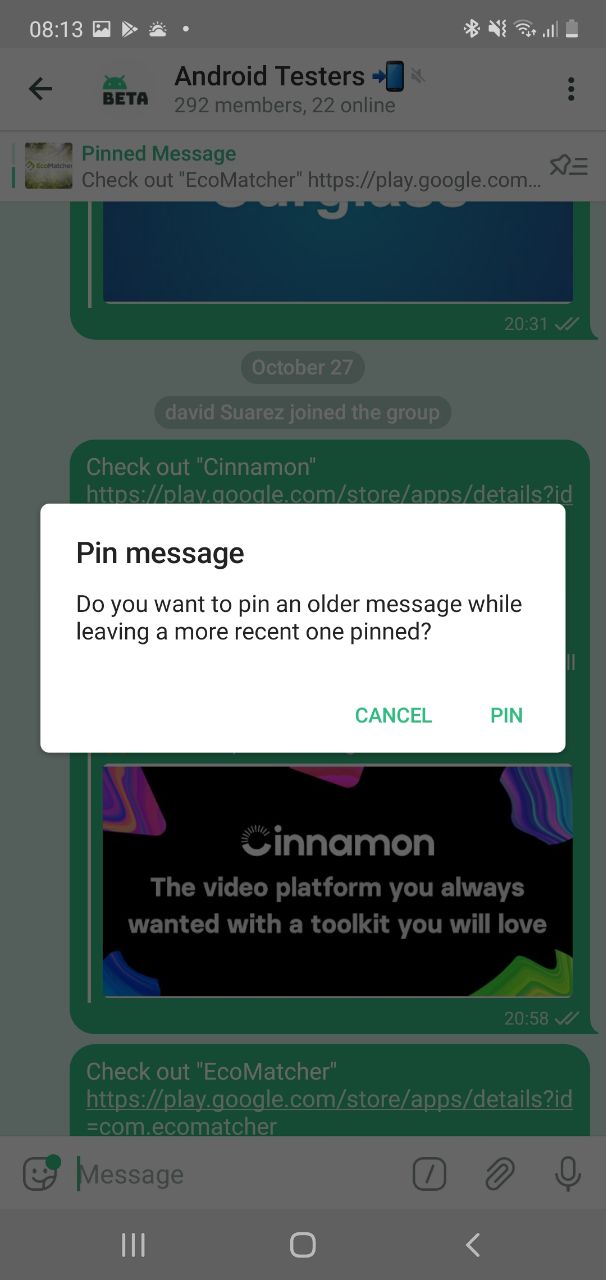 Another feature that can improve content discovery within channels and chats. Now, admins don't have to update the pinned post every time they want to add something important there. It will also allow having important posts to be pinned in discussion groups that won't be over-pinned by new posts in the attached channel.