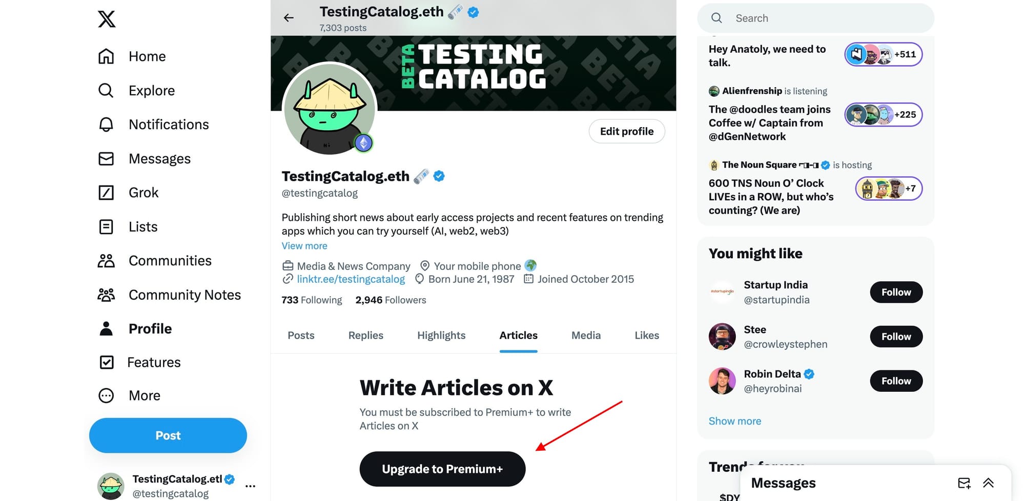 - For web users, if you're interested in accessing Articles or writing your own, this feature is yet behind a feature flag. Remember, you might need to have a Premium+ subscription with X to enable this feature fully.